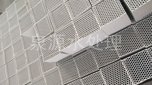 蜂窩蓄熱體具有低熱膨脹性、比熱容大、比表面積大、壓降小、熱阻小、導熱性能好、耐熱沖擊好等特性;廣泛用于冶金機械行業蓄熱式高溫燃燒技術(HTAC),它把回收煙氣余熱與燃燒及降低NOX排放等技術有機的結合起來,從而實現節能降低NOX排放量的目的。
